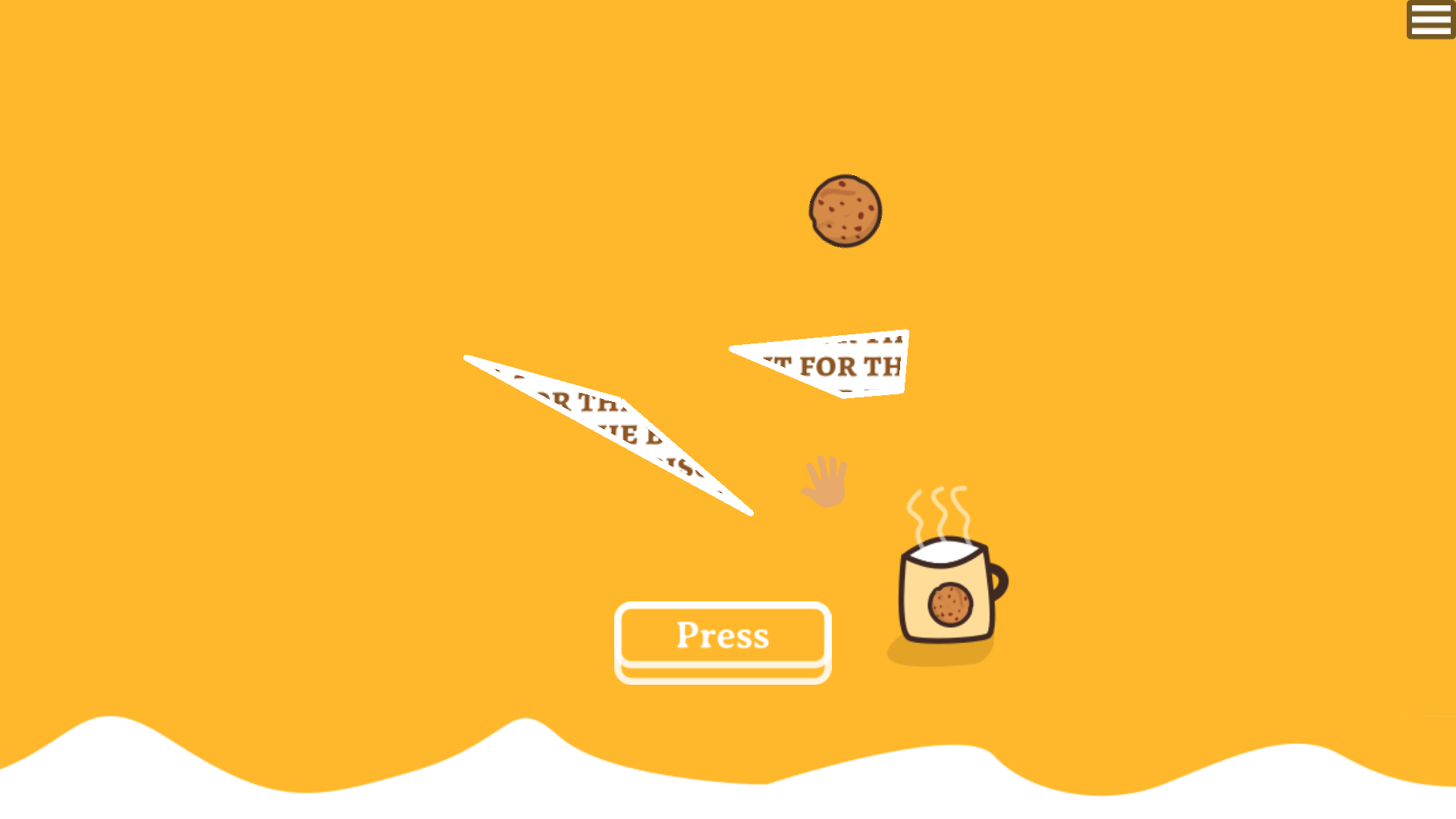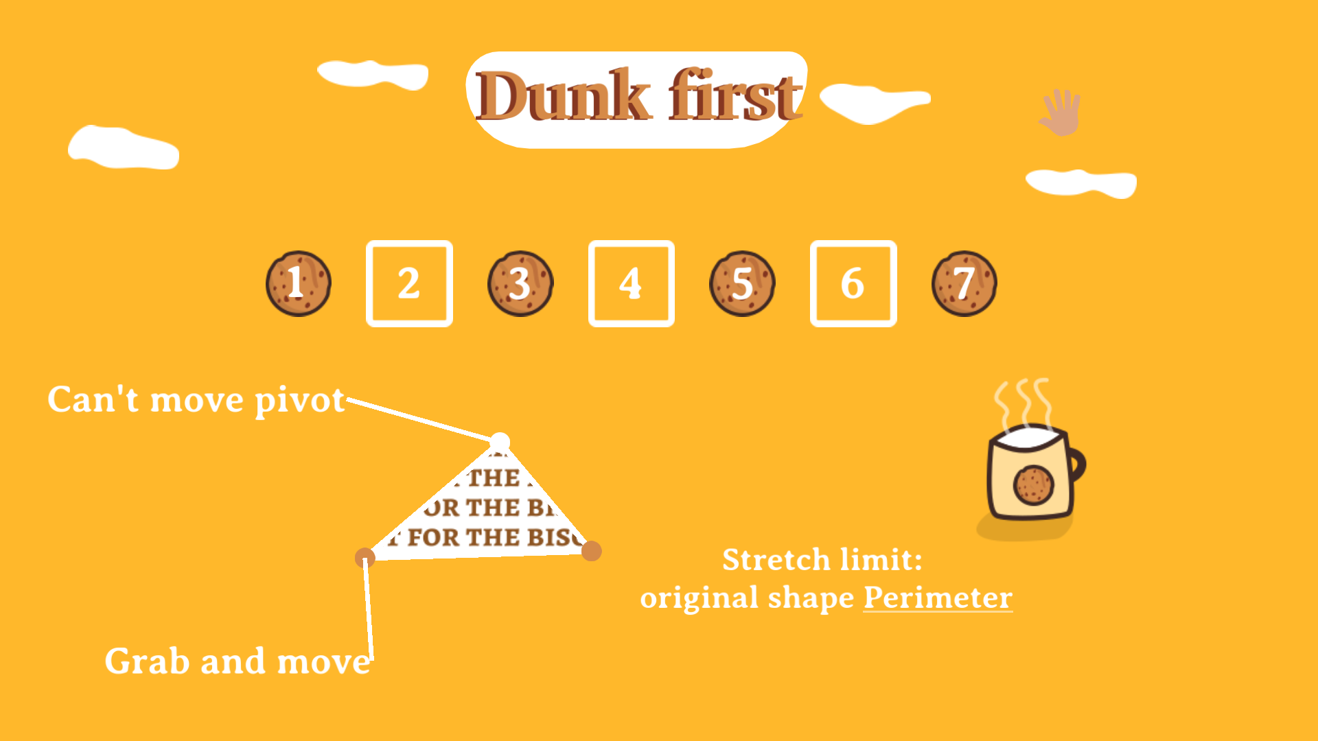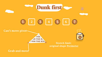 Grab the spheres and move them to ideal locations so that the biscuits can dunk in a warm glass of milk. Press spacebar to activate the cookie.